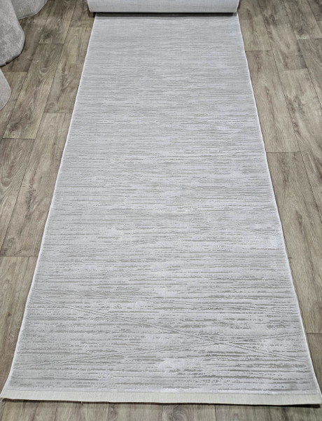 New arrival of modern carpets in light shades: cream and light gray. A popular 3D pattern effect on paths, thanks to a decrease in the height of the pile in a certain pattern in the design. Good quality, carpets will last a long time. Not afraid of moisture. Synthetic pile in which various bacteria and mites will not live. Good vacuuming and care.
