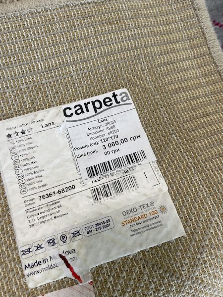 Безворсовый натуральный ковер молдавского производства из 100% шерсти